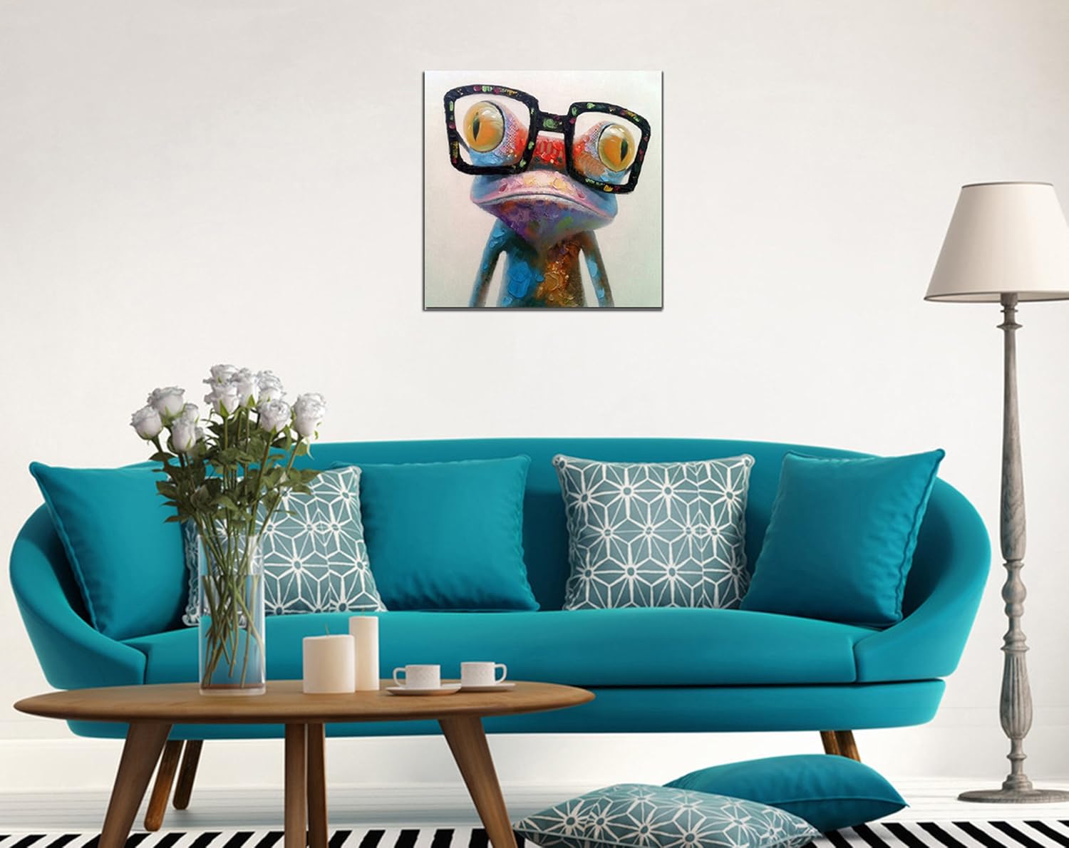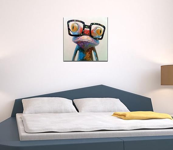 Fokenzary Peint à la main peinture à l'huile mignonne grenouille avec des lunettes sur toile tendue et encadrée moderne Pop Art mur de toile 24x24in: Amazon.fr: Cuisine & Maison