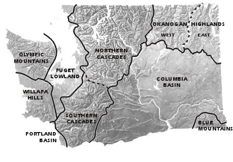 1 Coastal 2 Western Lowlands 3 Western Cascade Mountains Cascade Mountains Pacific Northwest Map Palouse